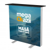 Masa este fabricată din aluminiu anodizat dur, ceea ce garantează o calitate înaltă și un timp îndelungat de utilizare. Aceasta poate fi asamblată fără unelte și durează doar câteva secunde. Fixarea graficii cu bandă de silicon asigură faptul că materialele imprimate sunt montate rapid și ușor. Datorită de becuri LED încorporate, întregul stand este perfect iluminat și atrage atenția trecătorilor de la distanță.