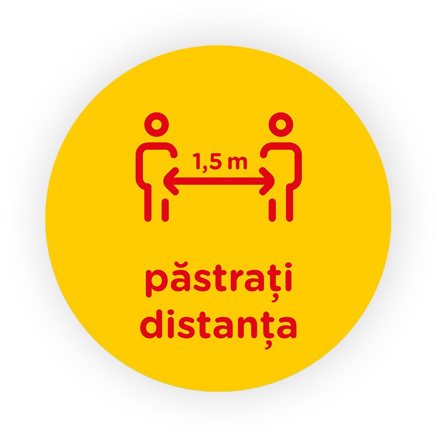 Descriere Am venit in ajutorul firmelor care sunt obligate sa afiseze mesaje de avertizare cu pastrati distanta, prin productia si vanzarea de stickere personalizate pentru afisarea mesajelor obligatorii, in spatii inchise cu trafic intens! Ideal in supermarket-uri, mal-uri, magazine, cladiri de birouri, showroom-uri